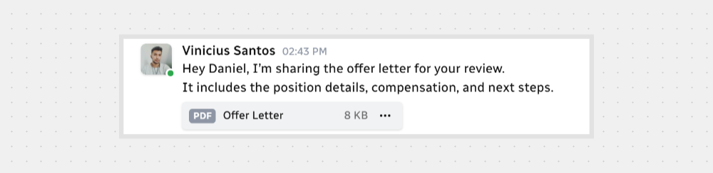 Need to send a resume, image, or document? You can add files right inside your message — no need to leave the chat.