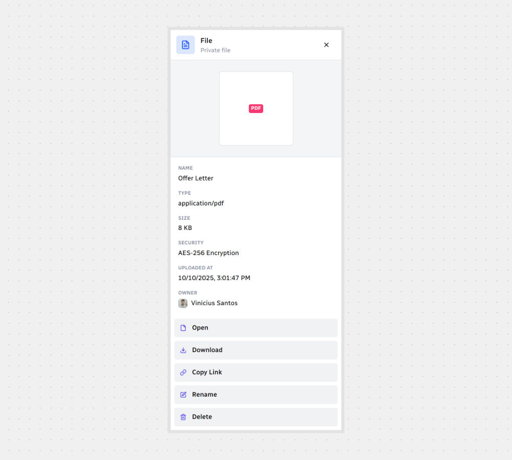 - Files never leave the platform — they’re stored securely and never shared externally.