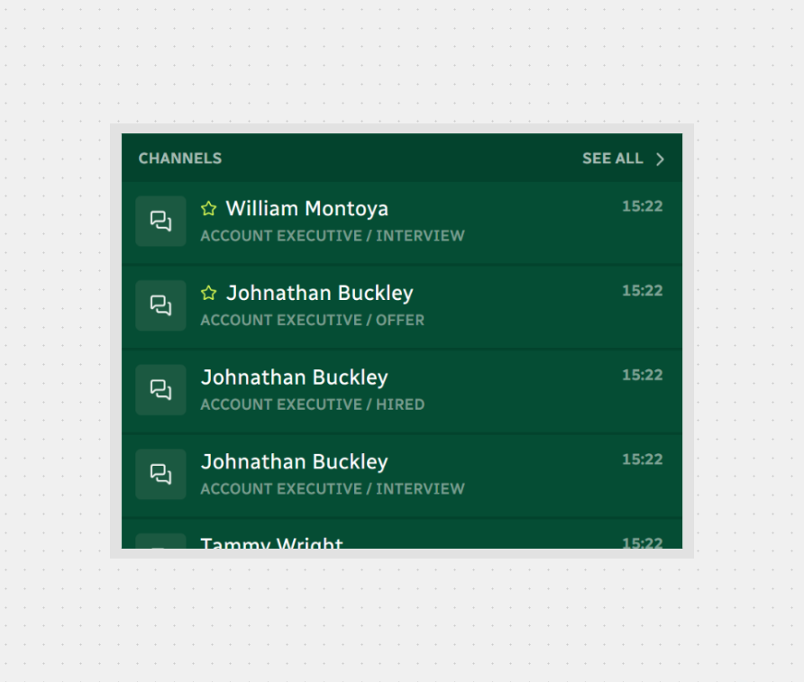 On the Home page, starred channels are shown at the top of the channel list so you can jump back in quickly.