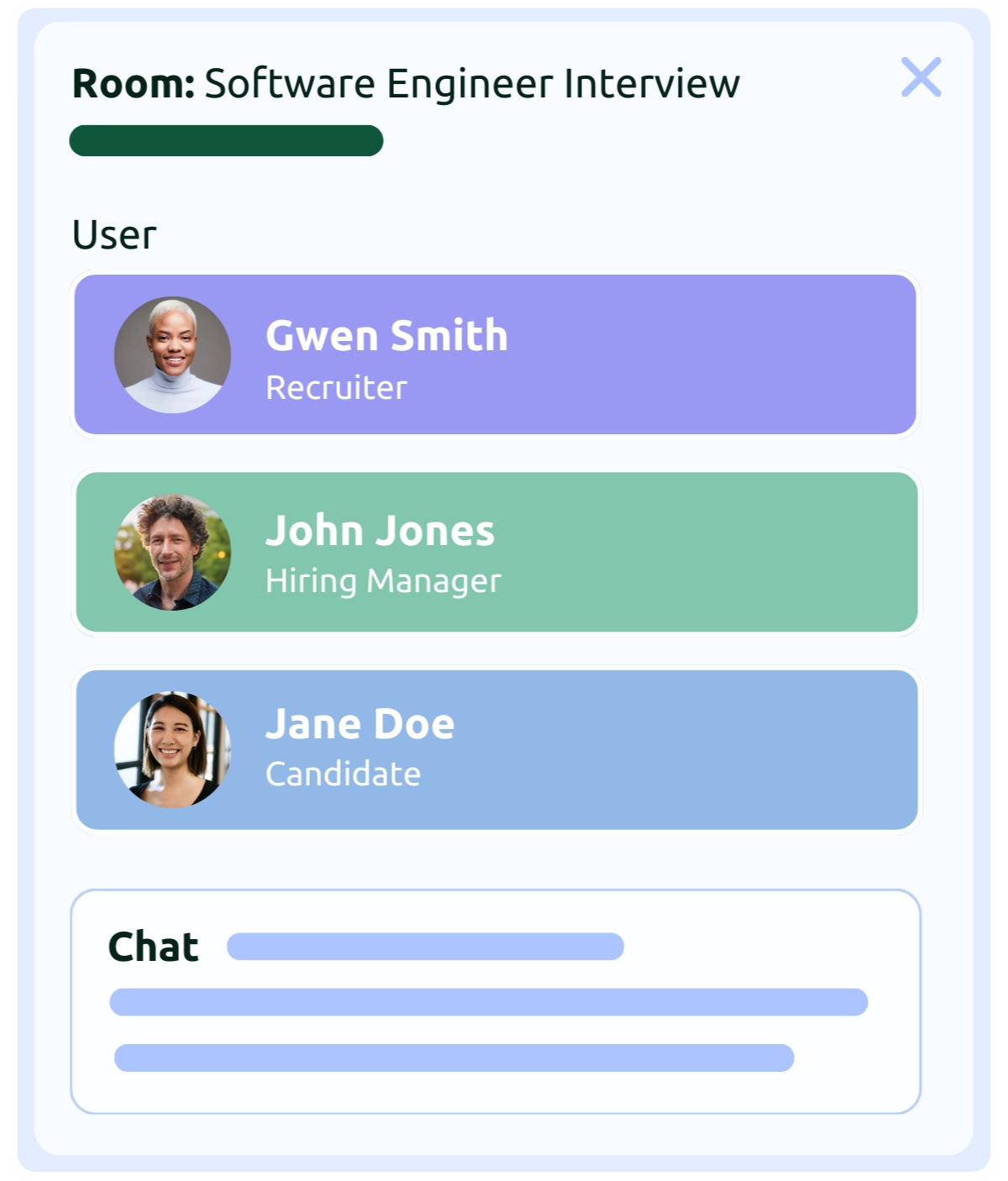 Sync2Hire provides recruiter-led workspaces where every internal discussion is organized in one place: general channels for company-wide collaboration, job-level channels for role-specific planning, and candidate channels that mirror ATS stages and statuses.